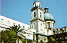 It has a beautiful facade and a slender cupola, and an interior with three naves.
