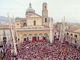 During the feast celebrated in honour of the Saint, the Sunday following the 22nd of June, eight spires, the Lilies and a wooden-papier mache’ boat are leaded in procession along the streets of the city. This is to remember the triumphal reception that Nola made for its Bishop when he returned from Africa, where he had gone to ransom the son of a widow from the slavery of the Vandals.